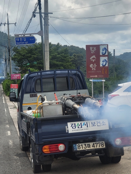경산시는 보건소를 중심으로 방역 차량 4대와 인력 9명을 투입해 △유충 구제제 △살충제 △살균제 등 방역을 실시했다.