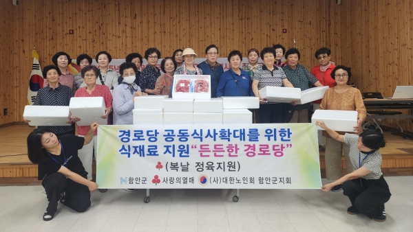 [아시아월드뉴스] 함안군은 경남사회복지공동모금회와 연계해 지난 22~23일 이틀에 걸쳐 관내 중식제공 경로당 30개소에 복날맞이 소고기와 돼지고기를 지원했다고 밝혔다.