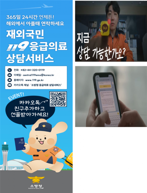 한편 온라인 플랫폼인 PASS와 협업해애플리케이션내 생활정보 배너와 푸시 알림을 통해 ‘재외국민 119응급의료상담서비스’의 정책 정보를 제공하고 소방청 공식 인스타그램 채널에서는 ‘카카오톡 채널 추가 인증 이벤트’를 진행하는 등 정책확산을 위해 다양하고 입체적인 홍보를 추진한다.