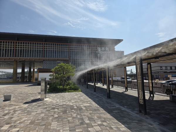 [아시아월드뉴스] 영주시는 여름철 폭염 대응을 위해 추진해온 영주역 광장 ‘쿨링포그’ 설치 공사를 마무리하고 지난 24일부터 본격 운영에 들어갔다고 밝혔다.