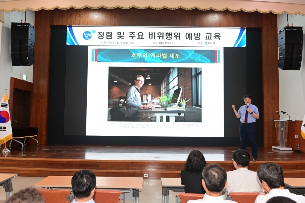 이번 교육은 공직자의 청렴 의식을 제고하고 공직윤리를 확립하기 위해 마련된 것으로 특히 금품·향응 수수, 부당한 이권 개입 등 사회적 비난 가능성이 큰 주요 비위행위에 대한 경각심을 높이고 이를 사전 예방하고자 추진됐다.
