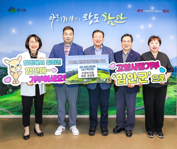 지난 23일 함안농협과 창원시 농협의 상호 고향사랑기부에 이어 25일에는 함안 대산면에 위치한 향토기업 ㈜삼보산업이 고향사랑 기부금 500만원을 기부하며 지역사랑을 실천했다.