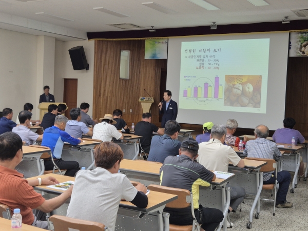 [아시아월드뉴스] 고령군은 감자 재배 농가의 소득 향상과 품질 경쟁력 강화를 위해 7월 24일 오후 2시부터 6시까지 농업기술센터 강당에서 감자작목반 회원 50여명을 대상으로 “감자 고품질 향상 재배 기술 교육”을 실시했다.