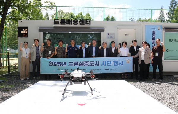 [아시아월드뉴스] 창원특례시는 25일 대원레포츠공원에서 국토교통부가 주최하고 항공안전기술원이 주관하는 ‘2025 드론 실증도시 구축사업’의 드론배송 1호 주문 시연회를 개최하고 시민 생활물품 배송서비스를 본격적으로 시작했다.