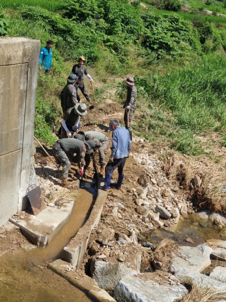 군부대는 현장 확인 직후인 7월 28일부터 인력 20명을 신원면 중유마을 등 주요 피해지역에 투입, 유실된 논두렁 복구, 배수로 정비, 토사 제거 등 긴급 복구작업을 진행하고 있다.