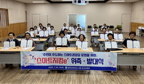 [아시아월드뉴스] 함안군보건소는 지난 24일 ‘주민이 주도하는 스마트경로당 운영’을 위한 ‘스마트지킴e’ 위촉 및 발대식을 개최하고 가야읍 내 11개 마을 경로당을 중심으로 지역주민 주도로 신체활동과 스마트기기를 활용한 건강관리 활동을 본격적으로 시작했다고 28일 밝혔다.