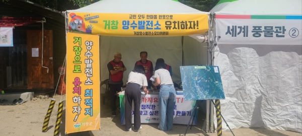 [아시아월드뉴스] 거창 양수발전소 유치위원회는 지난 7월 25일부터 개최되는 제35회 거창국제연극제 기간에 축제장을 찾는 관람객을 대상으로 양수발전소 유치 홍보 부스를 운영하고 있다.