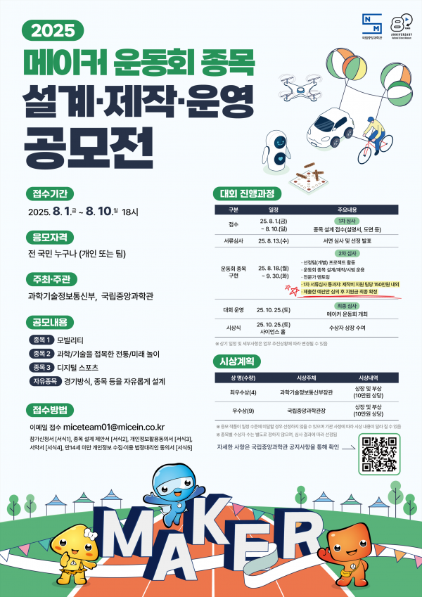 과학기술정보통신부 국립중앙과학관이 주최하는 ‘2025 메이커 운동회 종목 설계·제작·운영 공모전’은 우리가 아는 운동회의 모습을 통째로 다시 쓰기 위한 실험이다.