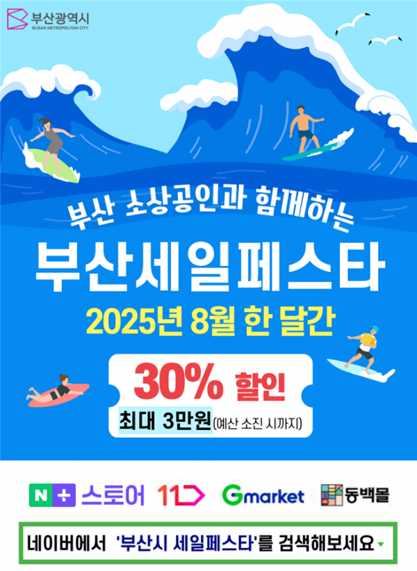 김봉철 시 디지털경제실장은 “온라인 소비가 일상화되면서 지역 소상공인의 온라인 판로 확보 중요성도 커지고 있다”며 “'부산세일페스타'가 지역 우수 제품을 널리 알리고 실질적인 매출 증가로 이어지길 기대한다”고 전했다.
