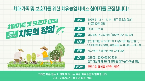 김영실 센터장은 “치매 환자를 돌보는 가족들은 장기적인 부담과 외로움을 겪는 경우가 많다”며 “이번 치유농업 프로그램을 통해 자연 속에서 마음의 쉼표를 얻고 서로 지지하고 위로를 나누는 시간이 되길 바란다”고 전했다.