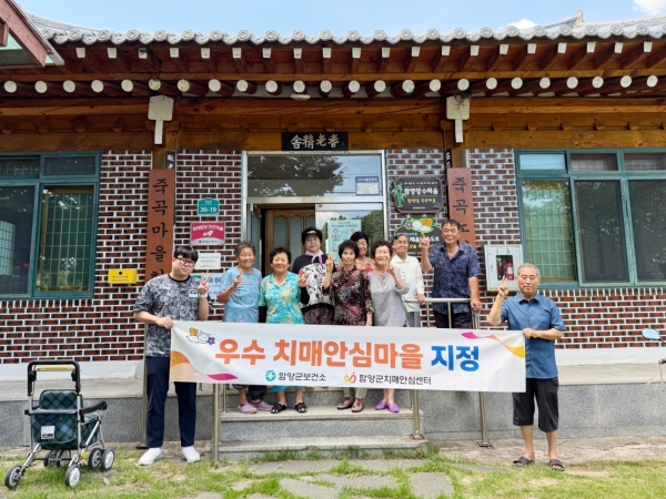 함양읍 죽곡마을은 2024년 치매안심마을로 지정된 이후 1년 넘게 활발하게 운영되어 왔으며 마을 주민의 참여도가 높아 7가지 우수 기준을 모두 만족해 2호 우수 치매안심마을로 지정됐다.
