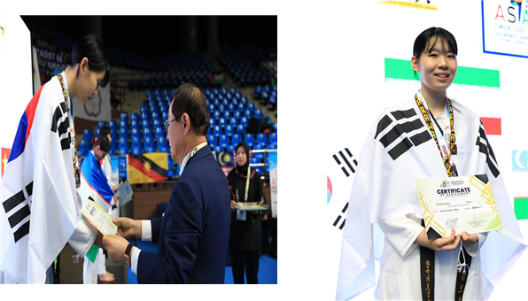 [아시아월드뉴스] 양구군은 양구 출신 태권도 유망주 김보림 선수가 지난 7월 25일부터 26일까지 말레이시아 쿠칭에서 열린 2025 아시아청소년태권도선수권대회에서 여자 +68kg급 은메달을 획득하며 국제무대에서 빛나는 성과를 거뒀다고 밝혔다.
