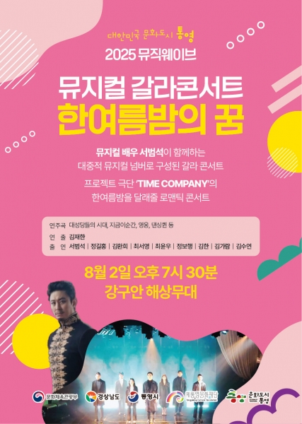 [아시아월드뉴스] 통영문화재단 통영문화도시센터는 오는 8월 2일 오후 7시 30분 강구안 해상무대에서 뮤직웨이브 정기공연 뮤지컬 갈라 콘서트 ‘한 여름밤의 꿈’ 공연을 진행한다.