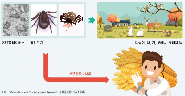 SFTS는 4월부터 11월까지 주로 발생하고 SFTS 바이러스를 보유한 작은소피참진드기에게 물린 후 6~14일 잠복기를 거쳐 38도 이상의 고열, 오심, 구토, 설사, 식욕부진, 혈소판 감소 등의 증상을 나타내는 제3급감염병으로 치명률이 높고 예방 백신과 치료제가 없어, 특히 주의해야 하는 감염병이다.