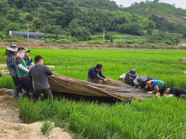 침수 피해를 입은 가구와 농가를 방문해 잔여 토사와 쓰레기를 수거하고 침수된 가재도구를 정리하는 등 피해 복구에 힘을 보탰다.