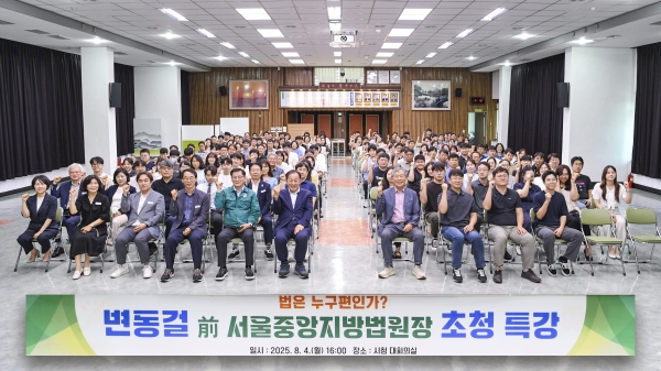 [아시아월드뉴스] 문경시는 지난 4일 시청 대회의실에서 변동걸 전 서울중앙지방법원장을 초청해‘법은 누구편인가?’라는 주제로 공직자 소양함양 특강을 했다.