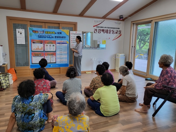 시는 폭염 취약 어르신이 주로 이용하는 경로당을 순회하며 온열질환 예방 점검표를 활용한 실태조사를 진행하고 폭염 대비 건강수칙 및 온열질환 응급조치법에 대한 교육을 실시하고 있다.