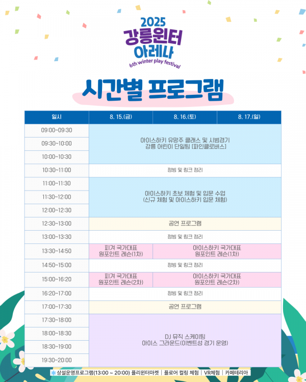 최용규 체육과장은 “한여름에 즐기는 겨울 스포츠의 색다른 재미를 느낄 수 있는 기회”며 “2025 강릉윈터아레나를 통해 빙상스포츠가 더욱 친근하게 시민 곁에 다가가기를 바란다”고 말했다.