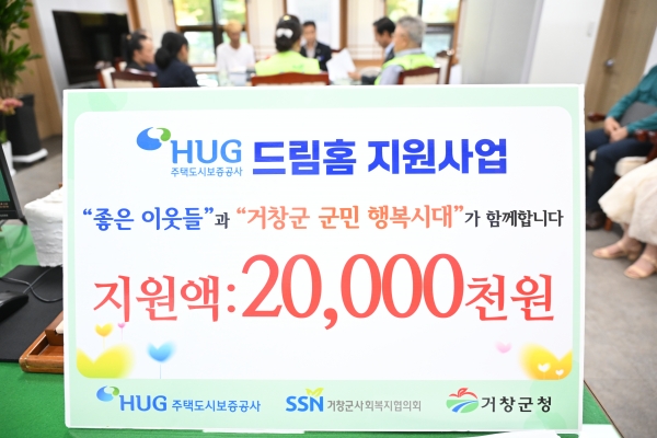 [아시아월드뉴스] 거창군은 지난 6일 군수실에서 관내 무주택 취약계층 4가구에 HUG 드림홈 지원사업 임차보증금 2,000만원을 전달했다.