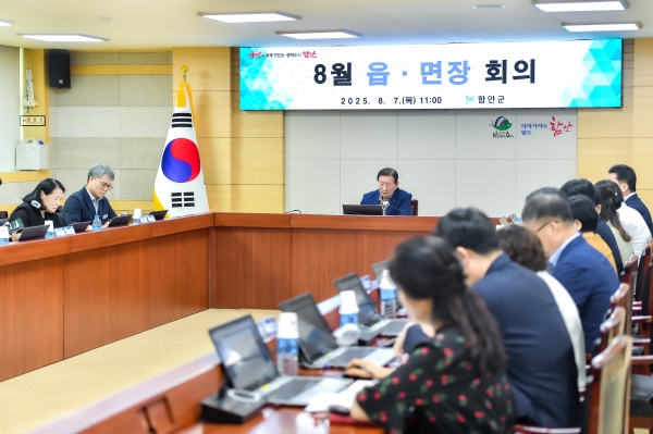 [아시아월드뉴스] 함안군은 지난 7일 오전 11시 함안군청 별관 3층 중회의실에서 조근제 군수 주재로 2025년 8월 읍면장 회의를 개최했다.