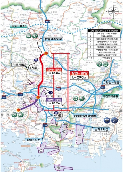 김해~밀양 고속도로 건설사업은 총연장 18.8km 규모로 김해 진례IC와 남밀양IC를 연결하는 노선이다.