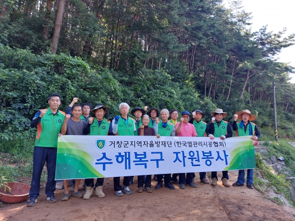 거창군 지역자율방재단 회장과 임직원, 한국열관리시공협회 거창지회 김종열 회장과 회원들은 합천군 가회면 일대를 찾아 체육공원 주변의 토사를 제거하고 배수로 내 쓰레기를 정비하는 등 시설 정비를 지원했다.