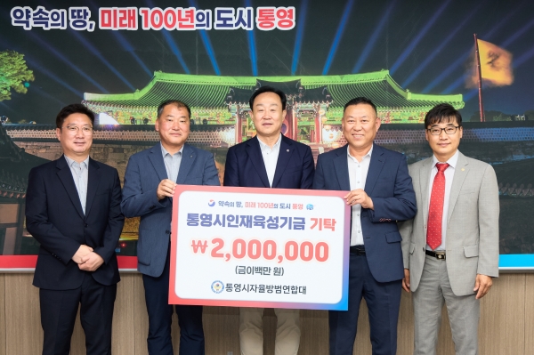 천영기 통영시장은 “평소 다양한 방범활동과 행사 지원으로 시민 안전을 지켜주신 김봉석 대장님과 대원들의 노고에 감사드린다”며 “소중한 기탁금은 통영의 인재들이 미래를 향해 도약할 수 있도록 뜻깊게 활용하겠다”고 전했다.