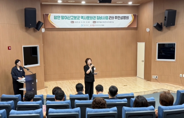 2차 주민설명회에서는 1차 설명회에서 제기된 주민 의견을 면밀히 검토·반영한 내용을 공유했으며 말이산고분군 역사문화권 정비사업의 현재 추진 상황과 향후 계획을 자세히 설명하고 참석자들과 활발히 소통해 추가 의견도 수렴했으며 아라가야 역사문화권 가치 인식 및 원지형 회복, 말이산고분군 역사관광 기반 조성, 말이산고분군 일원 역사 경관 형성, 말이산고분군 향유 공간 조성 및 접근성 개선 등 구체적인 추진 방향을 다시 한번 확인하는 시간을 가졌다.