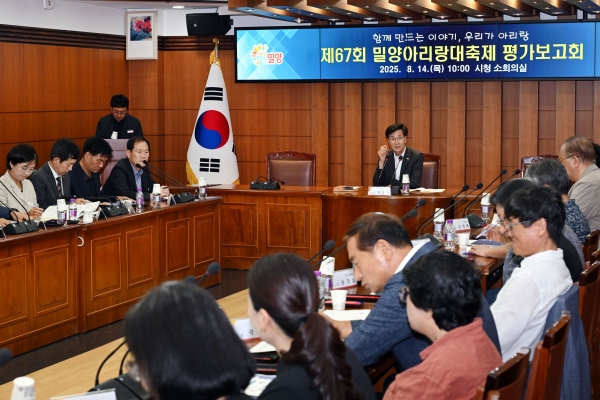 [아시아월드뉴스] 경남 밀양시는 14일 시청 소회의실에서 안병구 시장을 비롯한 간부 공무원, 축제 참여단체, 유관기관 관계자 등 30여명이 참석한 가운데 지난 5월 개최된 제67회 밀양아리랑대축제 평가보고회를 열었다고 밝혔다.