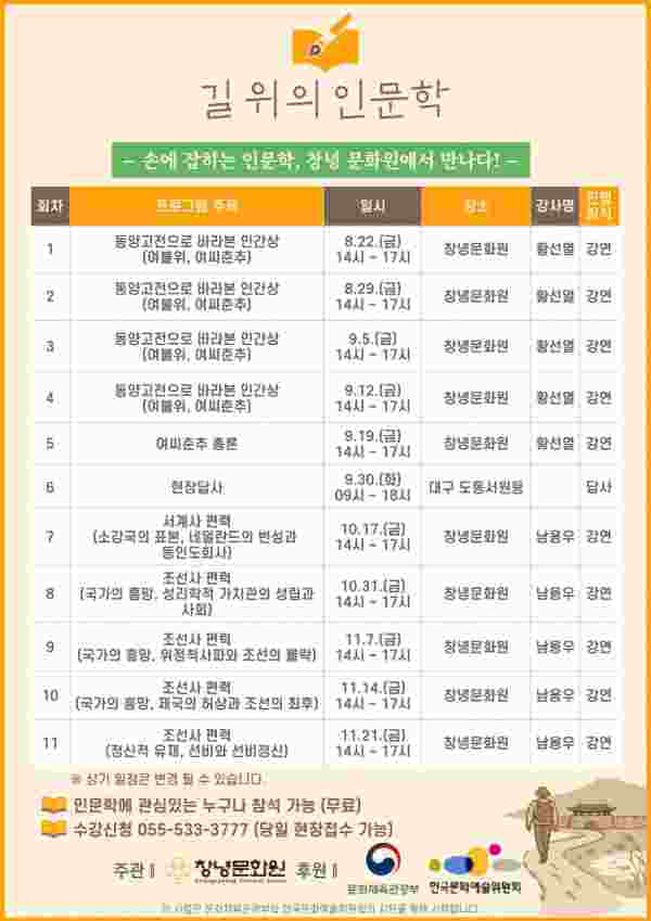 이는 창녕문화원이 이미 진행 중인 ‘손에 잡히는 인문학’ 프로그램과 맥을 같이 한다.