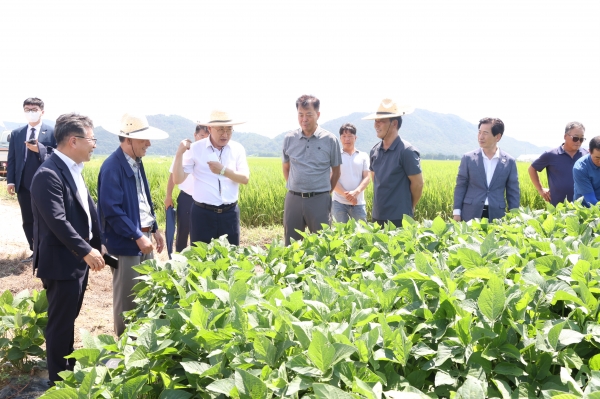 현장을 직접 찾은 주낙영 경주시장은 논콩 재배지를 꼼꼼히 살피며 “혁신농업타운은 기존 농업방식에서 과감히 탈피해 첨단화·규모화·기술혁신을 결합한 새로운 농업 패러다임”이라며 “대청영농조합법인이 농업혁신의 대표 모델로 자리매김하도록 적극 지원하겠다”고 강조했다.