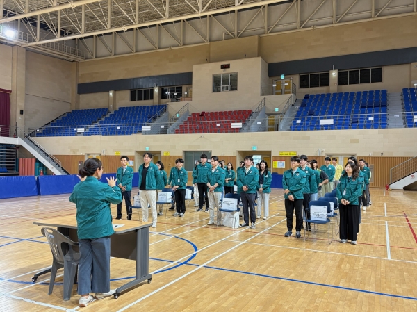[아시아월드뉴스] 고성군은 2025년 을지연습 첫날인 8월 18일 고성군국민체육센터에서 19개 부서 필수요원 40여명이 참여해 행정기관 실제 소산훈련을 실시했다.