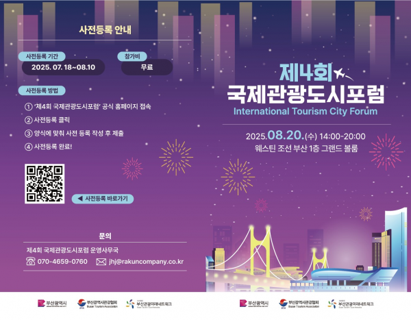 올해 4회째를 맞이하는 ‘국제관광도시 포럼’은 시가 주최하고 부산관광협회가 주관한다.