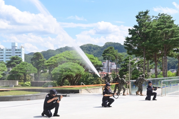 훈련은 미상의 드론 침투에 대한 봉화군청의 통합 자체방호 훈련, 테러 발생에 의한 긴급대피와 경찰과 군이 합동작전을 통한 테러범 수색 및 체포, 폭발에 의한 비상대피와 화재진압 및 사상자의 응급 후송 실시 연계를 봉화군 보건소와 합동으로 실시하는 등 실제 상황에 버금가게 진행했다.