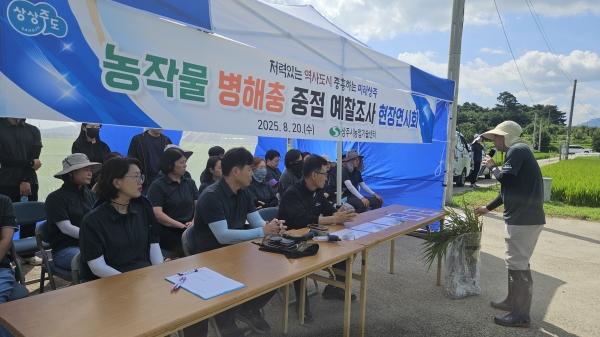 [아시아월드뉴스] 상주시농업기술센터는 농작물 피해를 유발하고 있는멸구류 및 돌발해충 발생 피해를 최소화하기 위해 농업기술센터 전직원을 총력 투입해 벼·과수류의 농작물 병해충 중점 예찰조사에 나섰다.