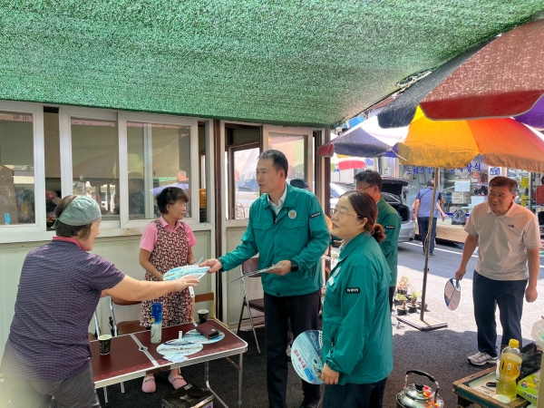 또한 무더위 쉼터와 전통시장에서는 이용자 안전 확보와 폭염 행동요령 안내문 비치 상황을 점검하고 군민들에게 쿨토시·쿨스카프·부채 등 폭염 예방 물품을 배부하며 폭염 대응 수칙을 홍보했다.
