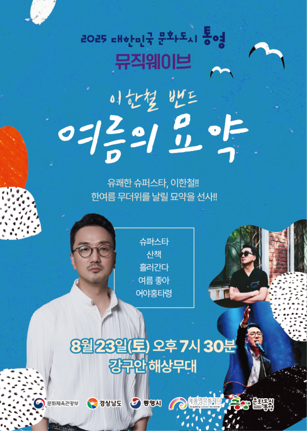 [아시아월드뉴스] 통영문화재단 통영문화도시센터는 오는 8월 23일 오후 7시 30분 강구안 해상무대에서 뮤직웨이브 정기공연 3회차 이한철 밴드의 ‘여름의 묘약’ 공연을 진행한다.