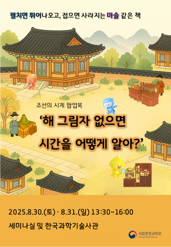 [아시아월드뉴스] 국립중앙과학관은 한국과학기술사관 개관 1주년을 맞아 오는 8월 30일과 8월 31일 ‘조선의 시계 입체책‘해 그림자 없으면 시간을 어떻게 알아?’체험 행사’를 개최한다고 밝혔다.