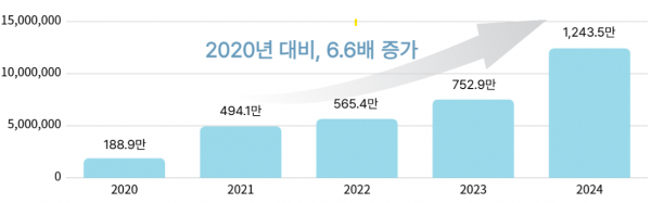 전자증명서 발급 건수도 2024년 약 2,620만 건으로 2020년 약 48만 건에서 54배가 증가했고 전년과 대비해서도 40.6%가 증가했다.