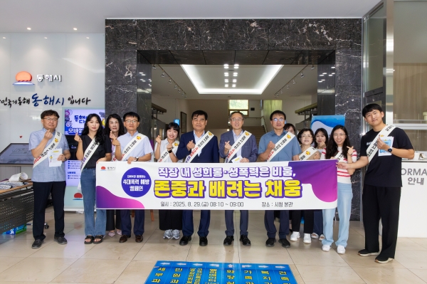 이번 캠페인은 동해시장을 비롯한 국장급 이상 간부 공무원들이 참여해 출근하는 직원들을 맞이하며 홍보물품과 예방 안내서를 배부, 4대 폭력 근절에 대한 실천 의지를 적극 홍보했다.