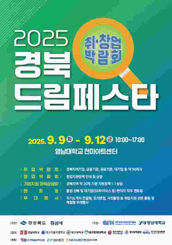 [아시아월드뉴스] 경상북도와 경산시가 주최하는 ‘2025 경북 드림페스타’ 가 9일부터 12일까지 4일간 영남대학교 천마아트센터 일원에서 개최된다.