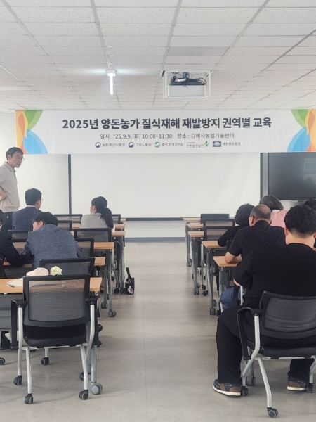 [아시아월드뉴스] 김해시는 농림축산식품부, 경남도와 함께 지난 9일 김해시농업기술센터에서 도내 양돈농가 60여명이 참여한 가운데 ‘질식사고 예방교육’을 실시했다고 10일 밝혔다.
