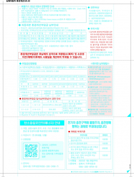 김해시 관계자는 “환경개선부담금은 후납제 방식으로 부과되기 때문에 소유권 변경이나 폐차, 말소 이후에도 1~2회 더 부과될 수 있다”며 “기한 내 납부하지 않아 불이익을 받지 않도록 기간 내 납부를 당부드린다”고 말했다.