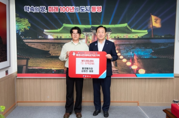 [아시아월드뉴스] 통영시는 지난 9일 통영폐차장에서 지역 인재 육성과 교육 발전을 위해 인재육성 기금 2백만원을 기탁했다고 밝혔다.