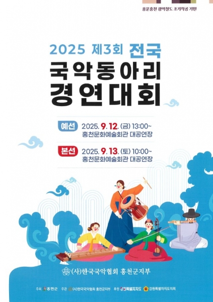 [아시아월드뉴스] 홍천군은 9월 13일 오전 10시 홍천문화예술회관 대공연장에서 제3회 전국 국악동아리 경연대회를 개최한다.