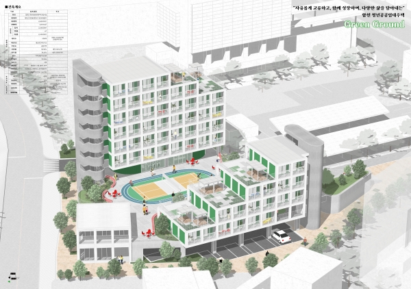 이번 설계안은 청년의 여러 활동을 담을 수 있는 커뮤니티 플랫폼 계획과 경관 및 입면 계획이 우수하다는 점에서 높은 평가를 받았다.