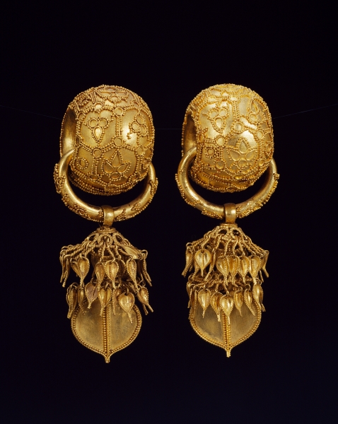 먼저 ‘보문동 합장분 금귀걸이’는 한국 최초의 미학자이자 미술사학자인 고유섭 선생이 세계에서 가장 아름다운 금귀걸이라고 극찬한 신라 황금 문화를 대표하는 명품이다.