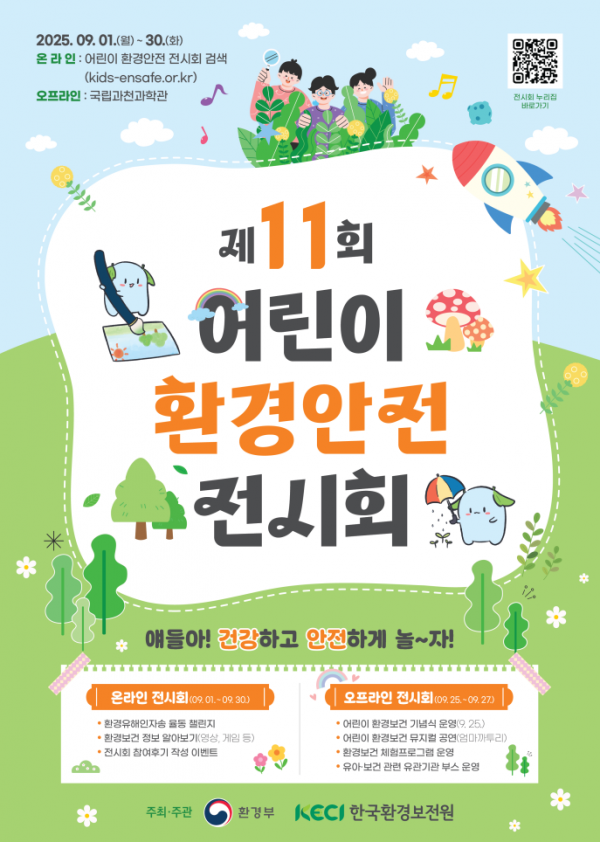 [아시아월드뉴스] 환경부와 한국환경보전원은 9월 25일부터 27일까지 국립과천과학관에서 ‘제11회 어린이 환경안전 전시회’를 개최한다.