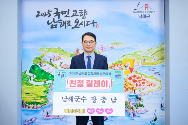 [아시아월드뉴스] 남해군은 ‘2025년 고향사랑 방문의 해’를 맞이해 ‘친절 남해’ 이미지를 제고하고 민관협력으로 범군민 친절 마인드를 함양하기 위해 군민 모두가 공감하고 참여하는 ‘친절릴레이 캠페인’을 시작한다고 밝혔다.