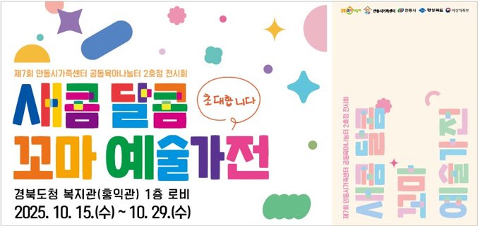 이번 전시회는 안동시와 안동시가족센터가 함께 추진하는 공동육아나눔터 사업의 일환으로 경상북도청 복지관(홍익관) 1층 로비에서 진행된다.